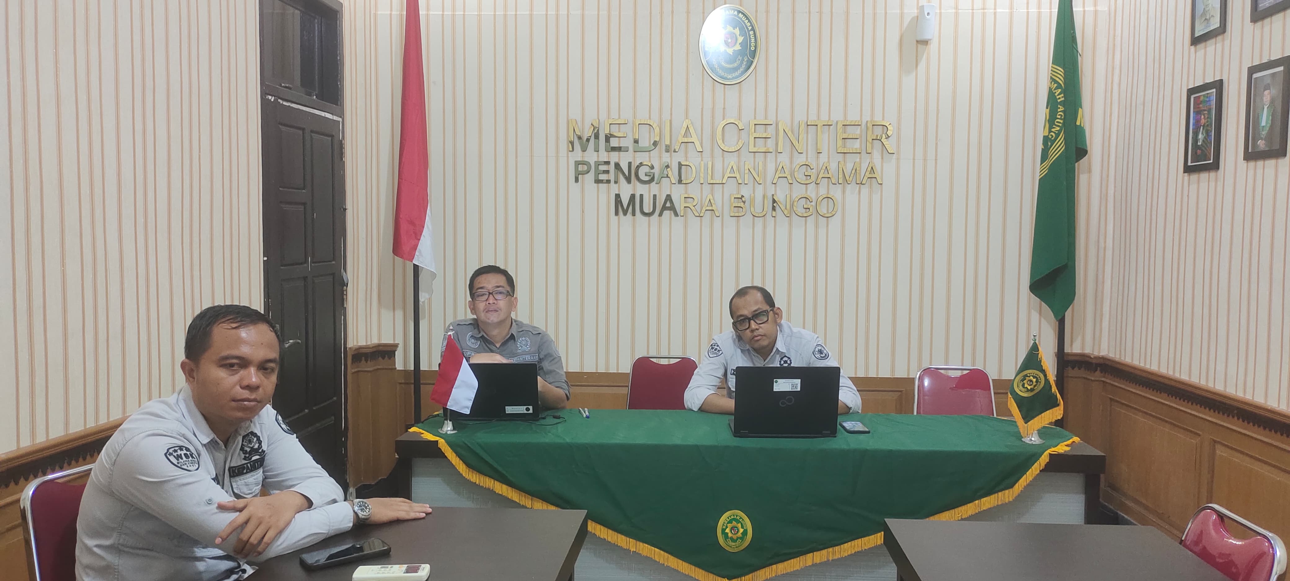 Muara Bungo | www.pa-muarabungo.goid. Ketua PA Muara Bungo Zulfahmi Mulyo Santoso, S.E.I., M.H, Panitera Noprizal, S.H.I., M.H dan Petugas Pelayanan Terpadu Satu Pintu (PTSP) Wahyu Mas Saputra. Lc mengikuti zoom meeting dalam rangka persiapan Implementasi Aplikasi Early Case Supervision System yang dilaksanakan oleh PTA Jambi.