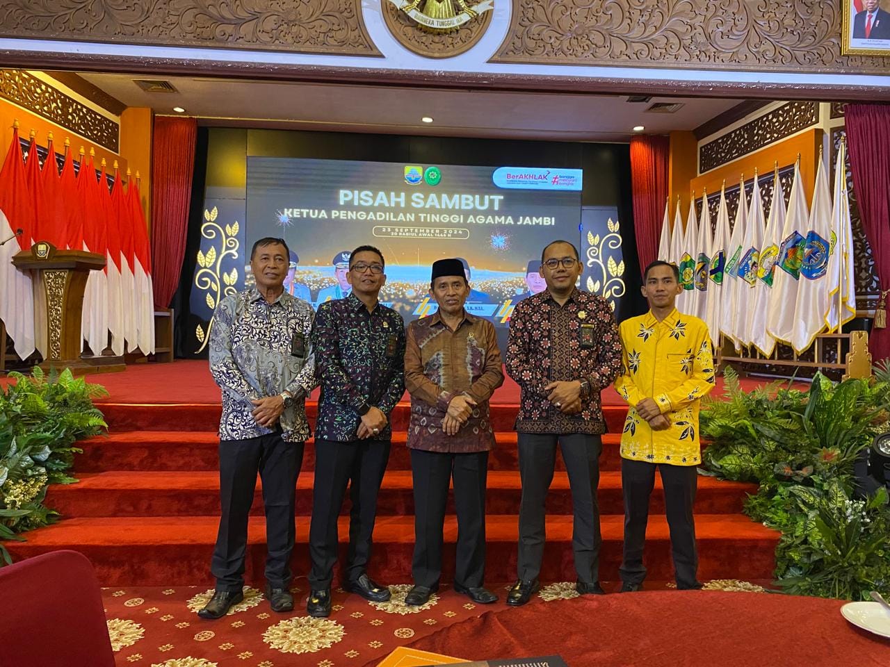 Senin (23/09/2024), Ketua PA Muara Bungo Zulfahmi Mulyo Santoso, S.E.I., M.H. didampingi Panitera dan Sekretaris PA Muara Bungo menghadiri acara Pisah Sambut Ketua PTA Jambi di Rumah Dinas Gubernur Jambi, hadir dalam acara pisah sambut tersebut seluruh Ketua, Wakil Ketua, Panitera dan Sekretaris Pengadilan Agama sewilyah PTA Jambi.